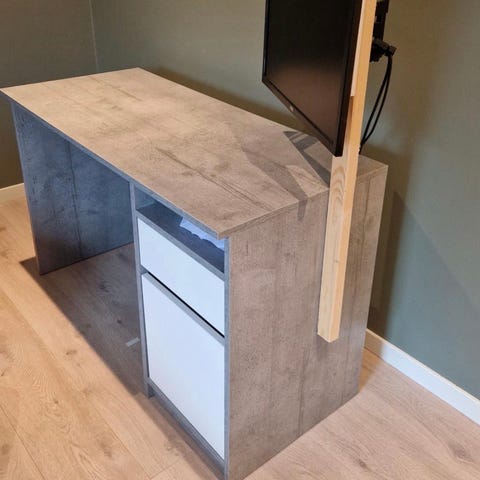 Skrivebord, pent brukt under hjemmekontor.
