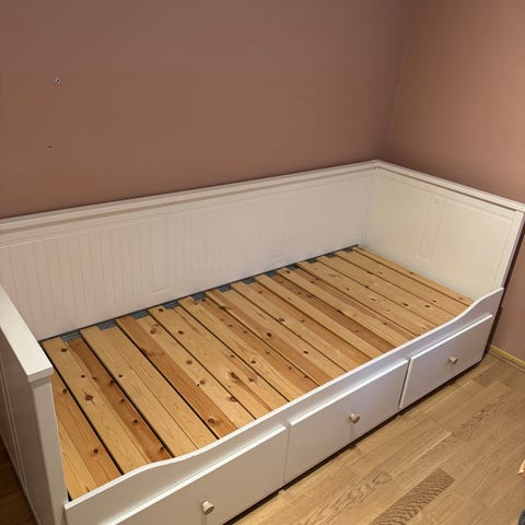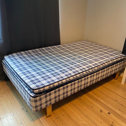 Fin rammemadrass.ingen flekker. Pent brukt. En dobbel madrass oppå og to enkle under. Står på ramme. Uten overmadrass.