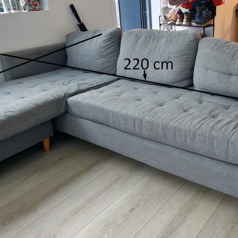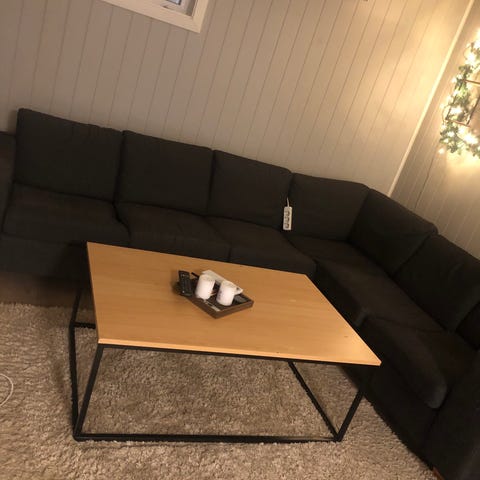 Mål ca 266x212. Godt brukt og noe slitte puter. Trekk på puter kan tas av og vaskes. Er demontert i tre deler.
