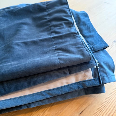 – Én beige, litt tyngre stoff