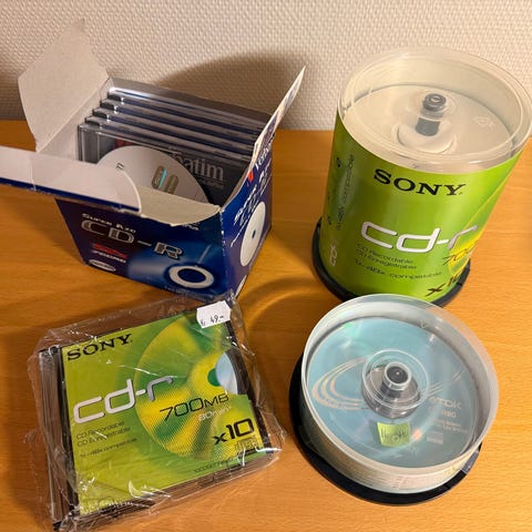 Totalt 19 ubrukte og uåpnede CD-R-plater selges samlet.