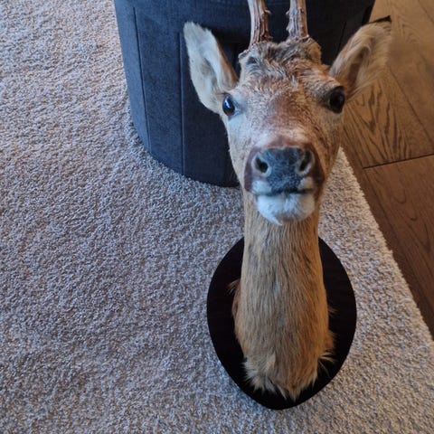 Reinsdyret er flatt så det passer best til å stå inntil vegg.