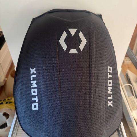XLMOTO Slipstream motorsykkelryggsekk med hardt skall og karbonutseende. Reduserer vindmotstanden takket være den strømlinjeformede formen. Vanntett. Slitesterk og lett. Har et rom for en 15-tommers bærbar PC. Utstyrt med justerbare stropper og en reflekterende logo. Det finnes også en motorsykkeljakke. Se annonsen min. Hvis du kjøper samlet, vil det bli rabatt. Alt er i perfekt stand.