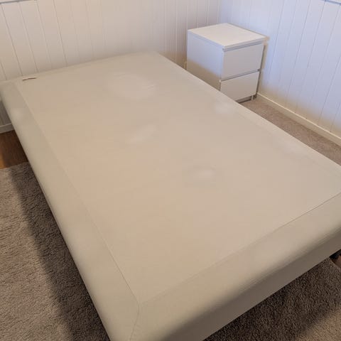 Sultan Slåstad seng (140x200), uten overmadrass. Brukt til gjesteseng. Noen bruksmerker, se bilder. Må hentes. Første mann som kan hente får den.