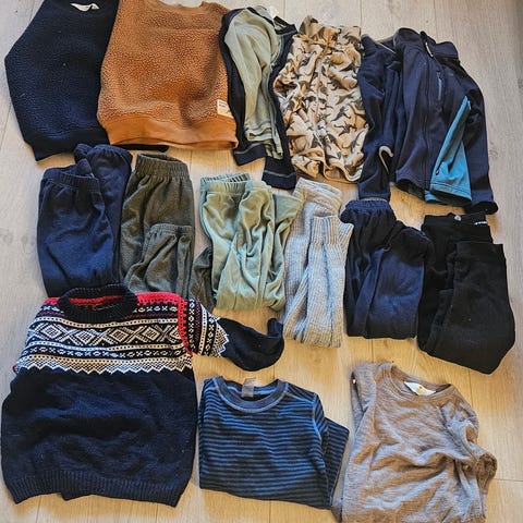 Myk genser Mayoral, 3 par bukser( 2 undertøy, 1 joggebukse)-Safa ull80% og teknisk undertøy. Klør ikke! 2par ullsokker, 2stk varm topper-klør ikke! Mye bruk igjen:)