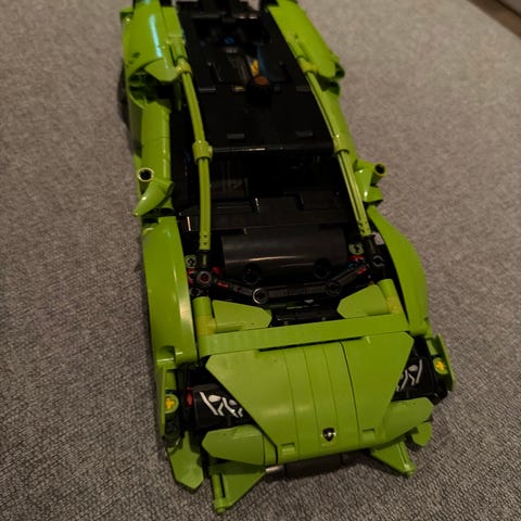 Autentisk design: Modellen er en detaljert kopi i skala med det virkelige kjøretøyet, inkludert de hvite racingstripene (en kombinasjon av klossdeler og klistremerker). Den limegrønne fargen er populær blant samlere.