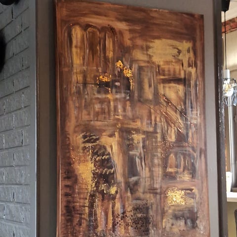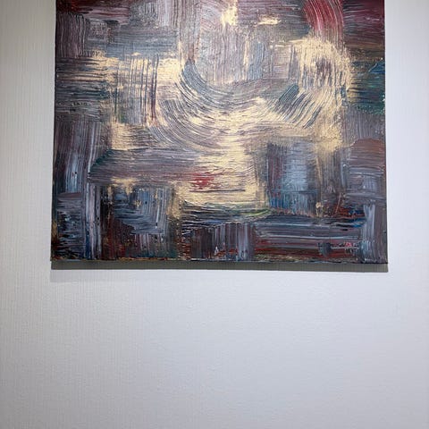 Stort abstrakt maleri, malt av meg med akryl på lerret,🎨 malt i jord og gulltoner 🌟...Fint i moderne interiør, passer inn til både mørke og lyse hjem. 70×100