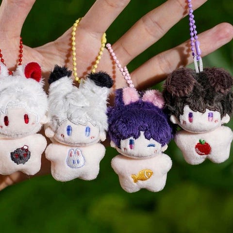 heklet labubu, lengden på leken er ca. 20 cm, prisen fra 270 til 300 kr