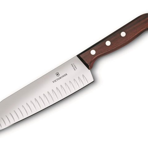 Knivsettet består av kokkekniv, brødkniv, santokukniv, grønnsakskniv, urtekniv og brynestål.