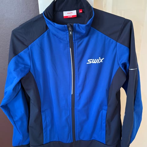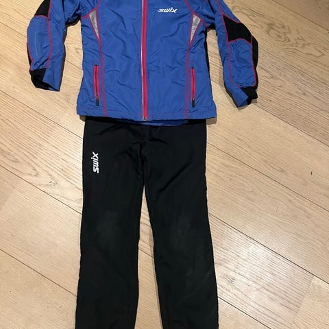 Swix Junior Skidress i blå farge, størrelse 12-14 år. Dressen består av jakke og bukse, laget for barn i denne aldersgruppen. Materialet og designet er tilpasset vinteraktiviteter som ski.