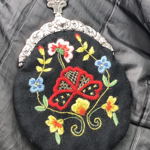 Stor og flott sølje (bunadsølv) i oksidert sølv. I underkant av 9 cm lang fra øverst til nederste heng. Selve hjertet er i overkant av 7 cm. Opprinnelig kjøpt hos gullsmed Berglihn i Kristiansand. Koster 7500 kr ny nå. 830 S oksidert sølv.