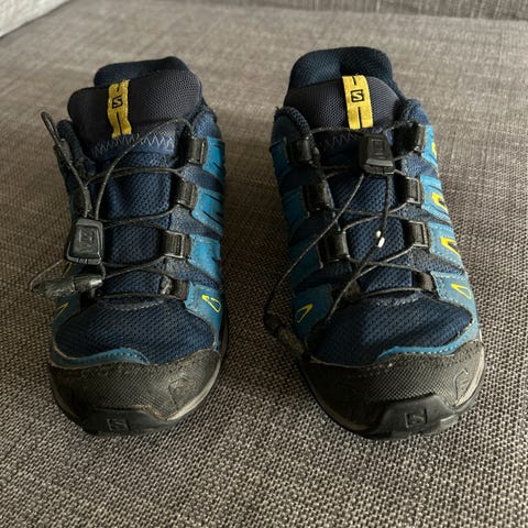Salomon Gore-tex tursko i str 38 selges. De er brukt kun få ganger og har få bruksmerker. Mest slitasje på den ene "festeanordningen" som holder lissene på den ene skoen samlet.