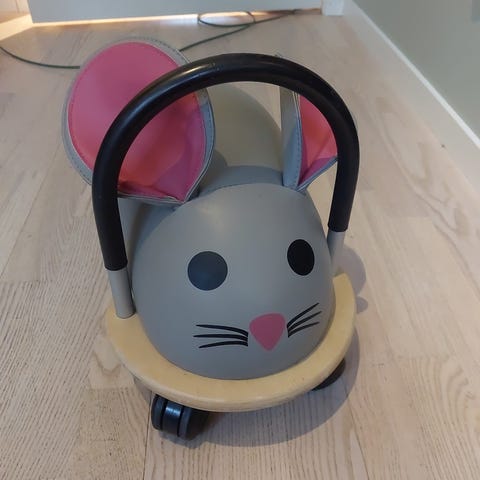 Selger en Wheely Bug Mouse – en stabil og populær gåbil/ride-on for små barn (ca. 1–3 år).