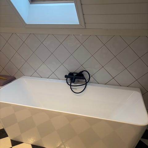 VikingBad badekar i hvit utførelse. Badekaret har standard størrelse og er utstyrt med armatur og hånddusj. Passer til baderom med flislagt gulv og vegger.