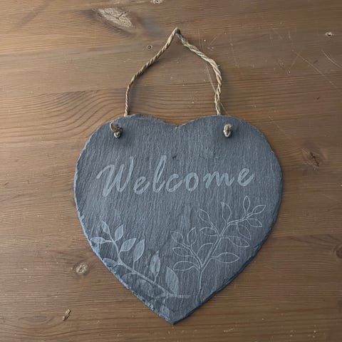 Skifer skilt med tekst og blomster