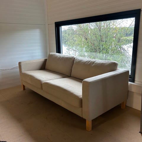 Fin liten sofa til barne- eller ungdomsrom. Trekket kan enkelt tas av og vaskes.