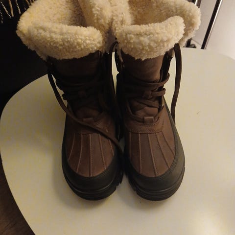 Vinterstøvler SOREL Shila i str 37 1/3 . Som ny , ingen bruksmerker . Vanntett, lett og varmt , sjelden modell , veldig pent. Passer godt for person som bruker vanlig sko i str 36- 36,5 .