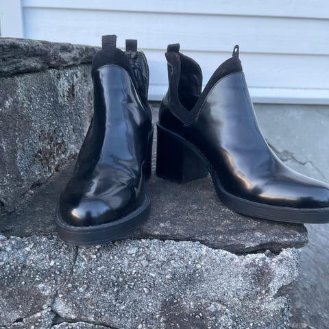 ECCO støvler i brun skinn, størrelse 39. Støvlene har glidelås på innsiden og en høy hæl. Egnet for daglig bruk og ulike anledninger.