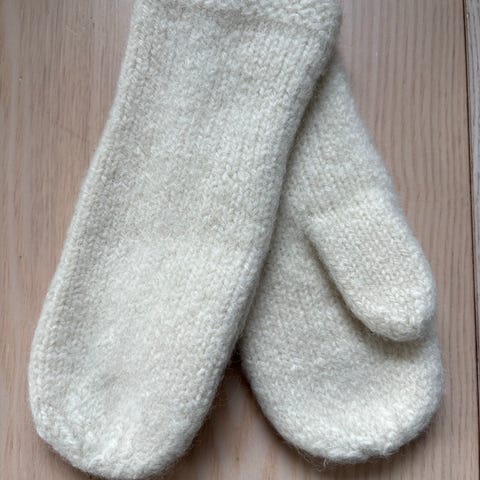 Deilige og varme tovede ullvotter som er strikket og tovet.