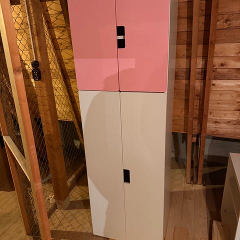 IKEA barnemøbel hvit og rosa med hyller og skuffer