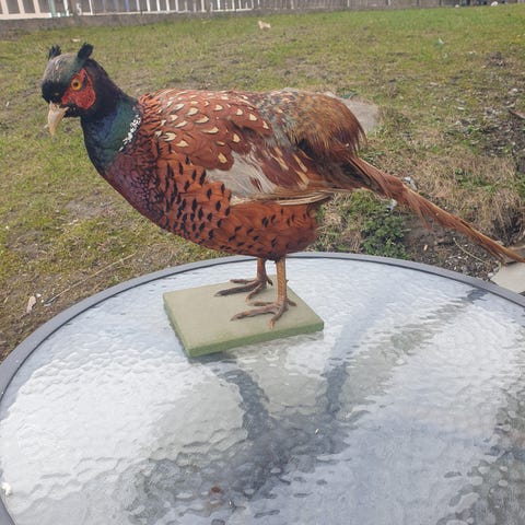 Selger en fin fasan hannfugl. Utstopping er profesjonelt utført av preparant Egil Hee fra Nord-Odal.