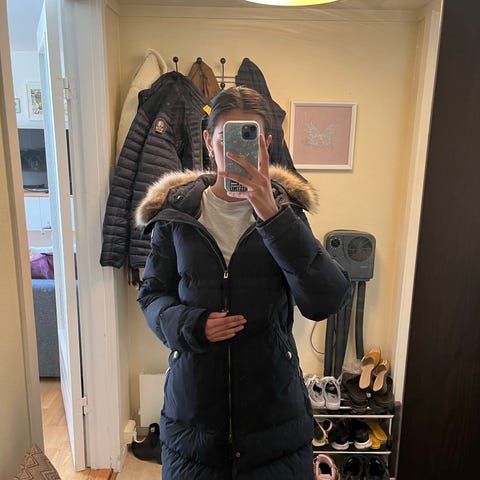 Lang jakke som vises Strl large.