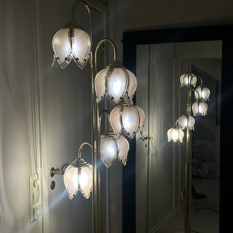 Kjempe fin sjelden gulvlampe med lotus / tulipan /blomst i lyserosa farge