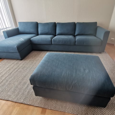 Godt brukt sofa og bord selges rimelig. Sofa er modul og kan flyttes rundt