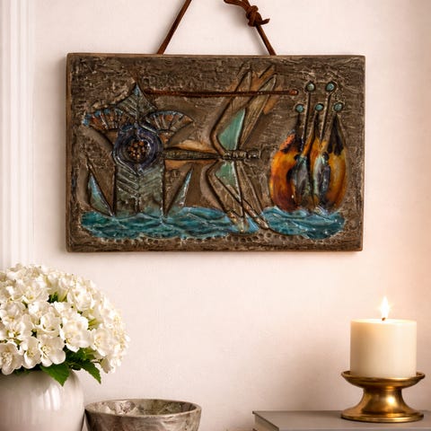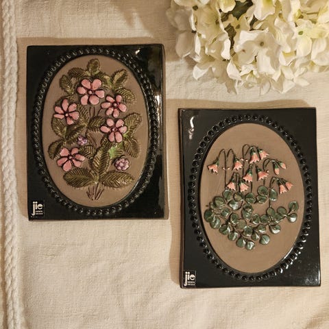 Tre keramiske veggplater/bilder med blomstermotiv. Vintage fra 1970-tallet svensk design.