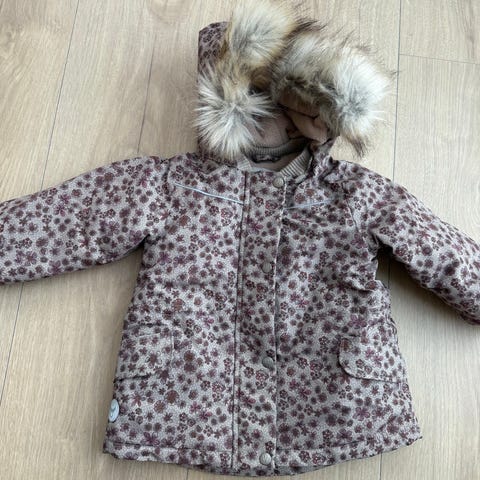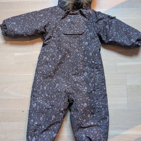 Pent brukt vinterdress i Wheat. Mørk blå med blomsterprint. Str 80. Oppleves som gode i størrelsen.