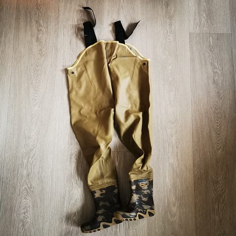 Noe stor i str. Brukt, men mye bruk igjen. Perfekt til bruk i regn, fisking, utforskning i naturen.