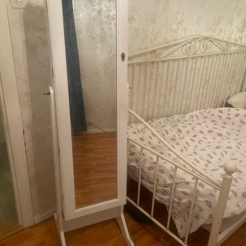 Stående Speil med oppbevaring til smykker ol. selges kr 150,-
