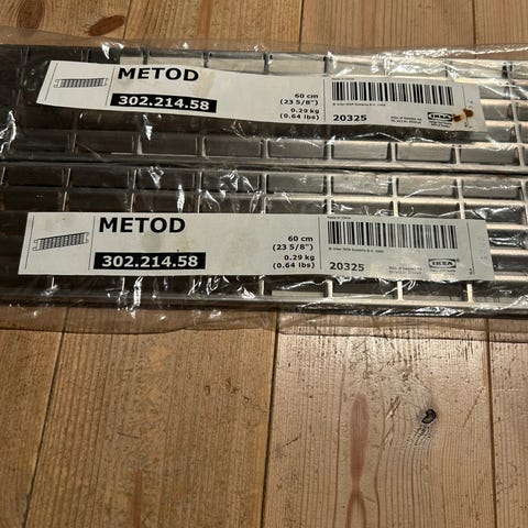 IKEA METOD veggskap i hvit farge, rektangulær form med flere hull for justering av hyller. Egnet for oppbevaring i kjøkken eller andre rom hvor veggmontering er ønsket.