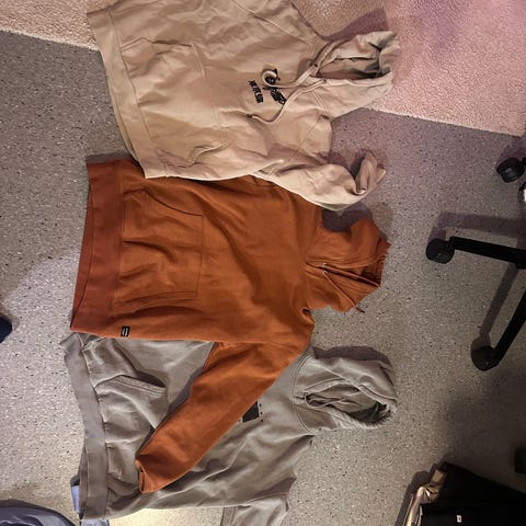 B214. str. M (herre) Diverse hettegensere (multi/blå/grå/grønn). Pent brukt, fortsatt mye bruk igjen. 50kr pr stk eller 200kr for alle fem hettegenserne.