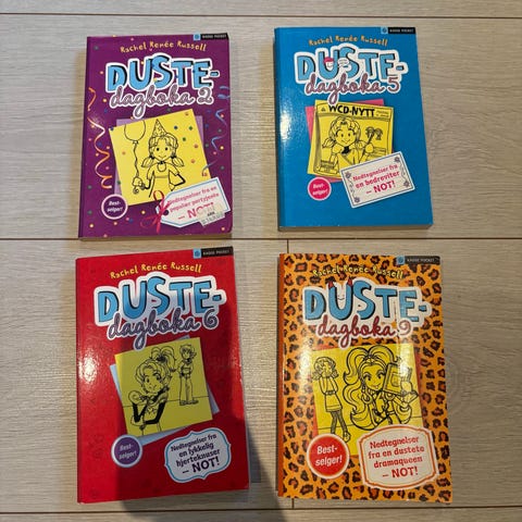 Duste Dagboka nummer 1, 2, 3 og 4 er bøker som inneholder tegneserieaktige illustrasjoner og humoristisk innhold. Bøkene er i paperback-format med fargerike omslag. De egner seg for lesere som liker humor og tegneserier.