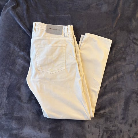 Tramarossa bukser – str. 35, men justert 77 cm fra innerbein. Buksene fra Tramarossa et must i garderoben. Kjent for italiensk håndverk og tidløs eleganse. Modellen er vanskelig å få tak i, og her får du muligheten til å sikre deg et par til billigere penge i Størrelse 35.