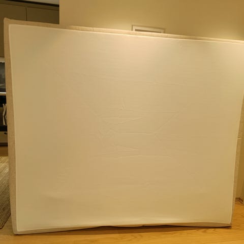 Rammemadrass med sengegavl og overmadrass.