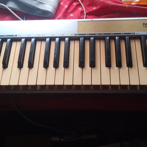 M-Audio Keystation 61 MIDI keyboard med 61 tangenter i svart farge. USB-tilkobling for enkel integrasjon med datamaskiner. Designet for musikkproduksjon og opptak.