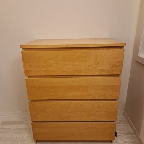 Kommode med tre skuffer. De to nederste skuffene er dypere enn den øverste.