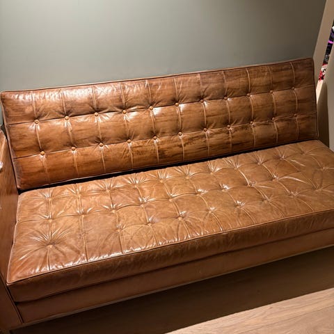 En tre seter og en to seter sofa gis bort mot henting i 2 etasje. Rød skinnsofa
