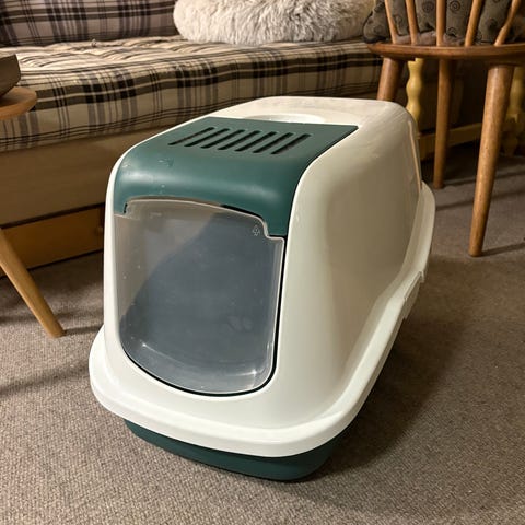 Inngangen har to "lapper" som etter hvert vil kumulere kattehår. Det bidrar å feste kattens lukt på doen og derfor kattens velvære. Denne kan fjernes etterhvert. (P.S. kan være lurt å putte kattehår på de lappene manuelt på begynnelsen)