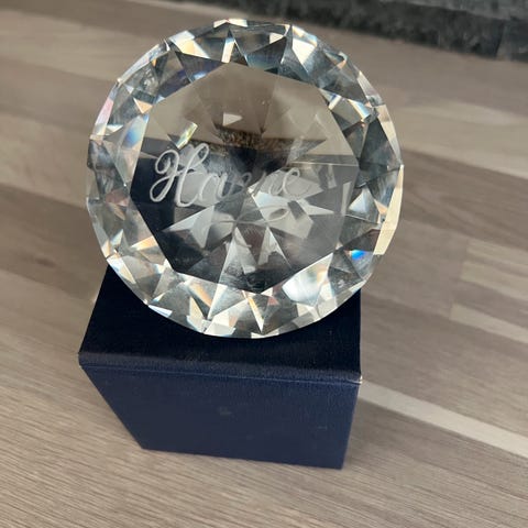 4 pyntekrystaller i etuiesker og i 3 ulike størrelse:
