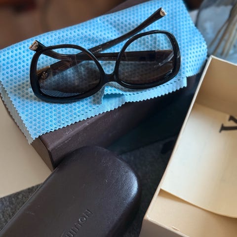 Louis Vuitton dame solbriller med brune glass og brune innfatninger. Solbrillene er håndlaget i Italia og har et klassisk design tilpasset kvinner. Glitter i innfatningen og gulldetaljer som gjør de ekstra luksuriøse. Kommer med dustbag og etui