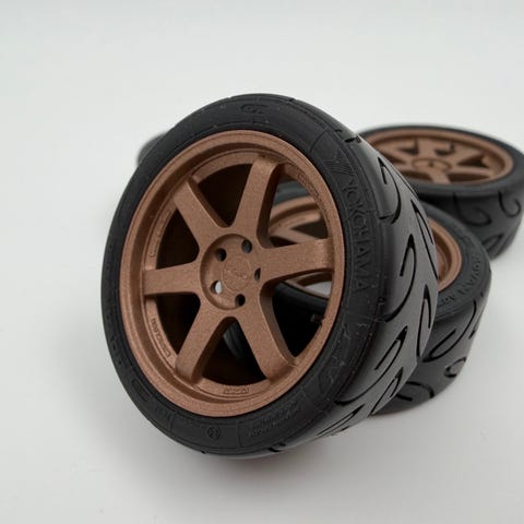 Dekkene er støpt i ekte gummi, ikke plast, med realistisk utseende.