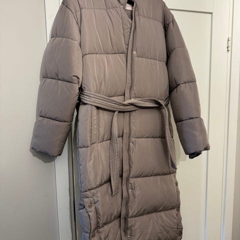 En pen, lang boblekåpe / parkas av det spanske merket Dandara, str L selges billig grunnet opprydning i bod og klær som sjelden blir brutk. Fargen er lys brun mot beige.