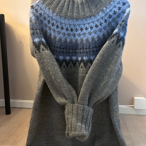 Swix Lillehammer 94 herregenser i størrelse XL og grå farge. Genseren er laget av ull og designet i Norge. Den har detaljer som knapper og et mønster inspirert av Lillehammer 1994-OL.
