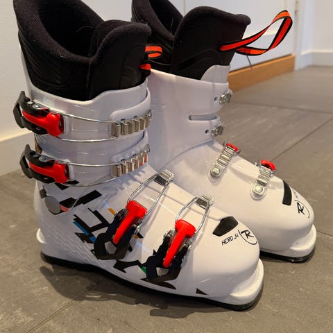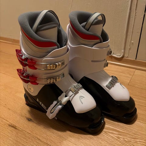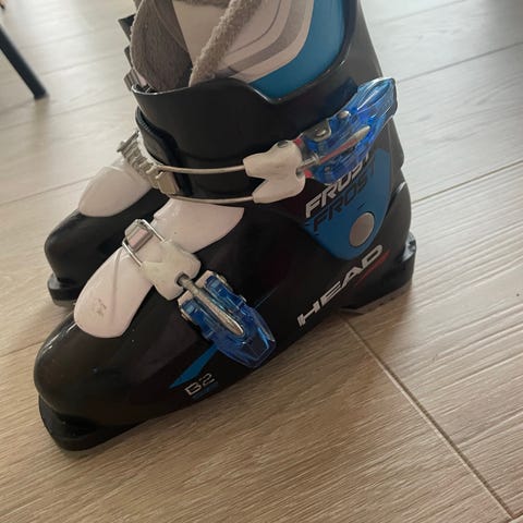 Head Frost alpinstøvler i grått med blå spenner. Støvlene har to spenner for justering og er laget for alpint bruk.