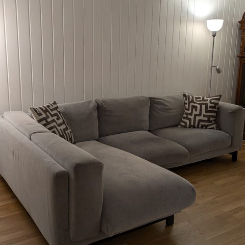 3 s xl pluss pall. Sofa og pall i lys grå velour stoff. Vaskbart i maskin. Kjempe enkelt å holde. Flekker vaskes bort med micro klut. Pall er 60 x 120 og du sitter fint 2 voksne eller 3 barn der når du har mange gjester. Sofa kostet 24.600 og pall 6800 ny. Selges for over 75% rabatt. Kr 6900. Sofaen er god å sitte i og lite brukt. Ingen dyr eller røyk. Har også lenestol med pall til salgs i samme stoff. Se annen annonse