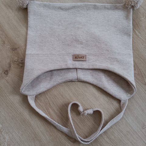 Kivat Agtuvi lue i beige farge, laget av 97% økologisk bomull og 3% elastan. Passer for barn i størrelse 1 i Kivat og er designet for både gutter og jenter. Luen har knytebånd for sikker passform og to duskdetaljer på toppen.