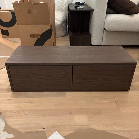 IKEA Stockholm TV-benk i valnøttfiner (utgått modell). I fin stand, men med noen bruksmerker som er avbildet. Selges fordi jeg flytter sammen med kjæresten og vi har nå to av samme TV-benk.